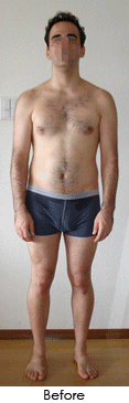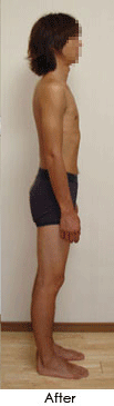 ワークを始める前は、「Before」の写真の姿勢がこのクライアントにとって最も自然で楽な位置でした。身体の不調はそれほど大したものではなく、肩や首が凝ったり、時々腰が痛かったりしていたそうです。セッションが進むにつれ、腰痛がなくなり、肩の凝りも和らいできたそうです。